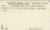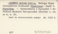 LITYŃSKI Alfred 1913 c Rewizya fauny tatrzańskich wioślarek (Cladocera). Część I. Daphnidae.