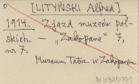 [LITYŃSKI Alfred] 1914 Zjazd muzeów polskich.