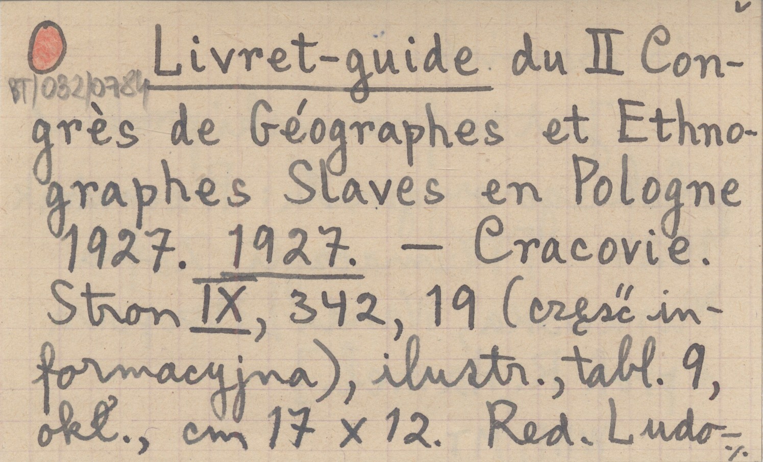 Livret-guide du II Congrés de Géographes et Ethnographes Slaves en Pologne 1927. 1927