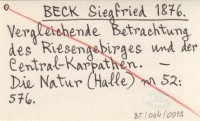 BECK Siegfried 1876 Vergleichende Betrachtung des Riesengebirges und der Central-Karpathen.