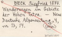BECK Siegfried 1877 Wanderungen im Gebiete der Hohen Tatra.