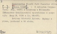 Llaurencius Slawik fuit fundator ville [...]. [ok. 1550?]