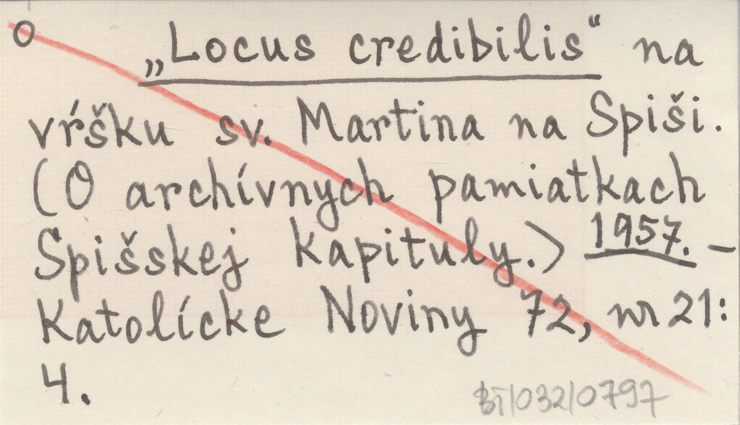 "Locus credibilis" na vřšku sv. Martina na Spiši. (O archívnych pamiatkach Spišskej kapituly.). 1957