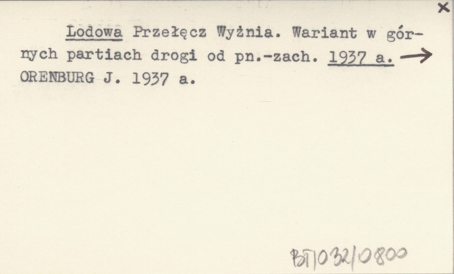 Lodowa Przełęcz Wyżnia. Wariant w górnych partiach drogi od pn.-zach. 1937 a