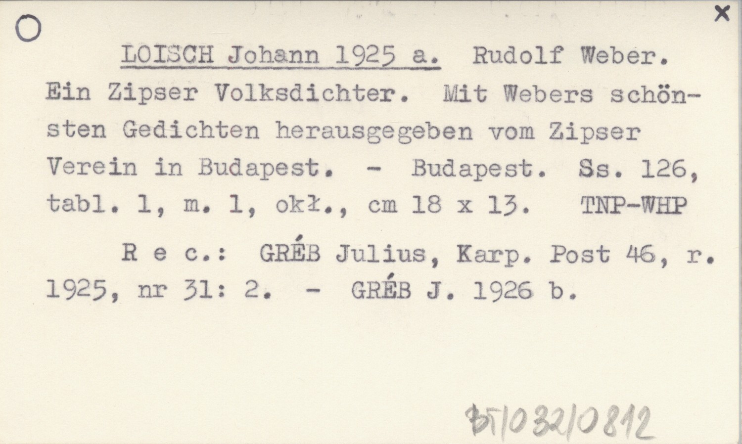 LOISCH Johann 1925 a Rudolf Weber. Ein Zipser Volksdichter. Mit Webers schönsten Gedichten herausgegeben vom Zipser Verein in Budapest.