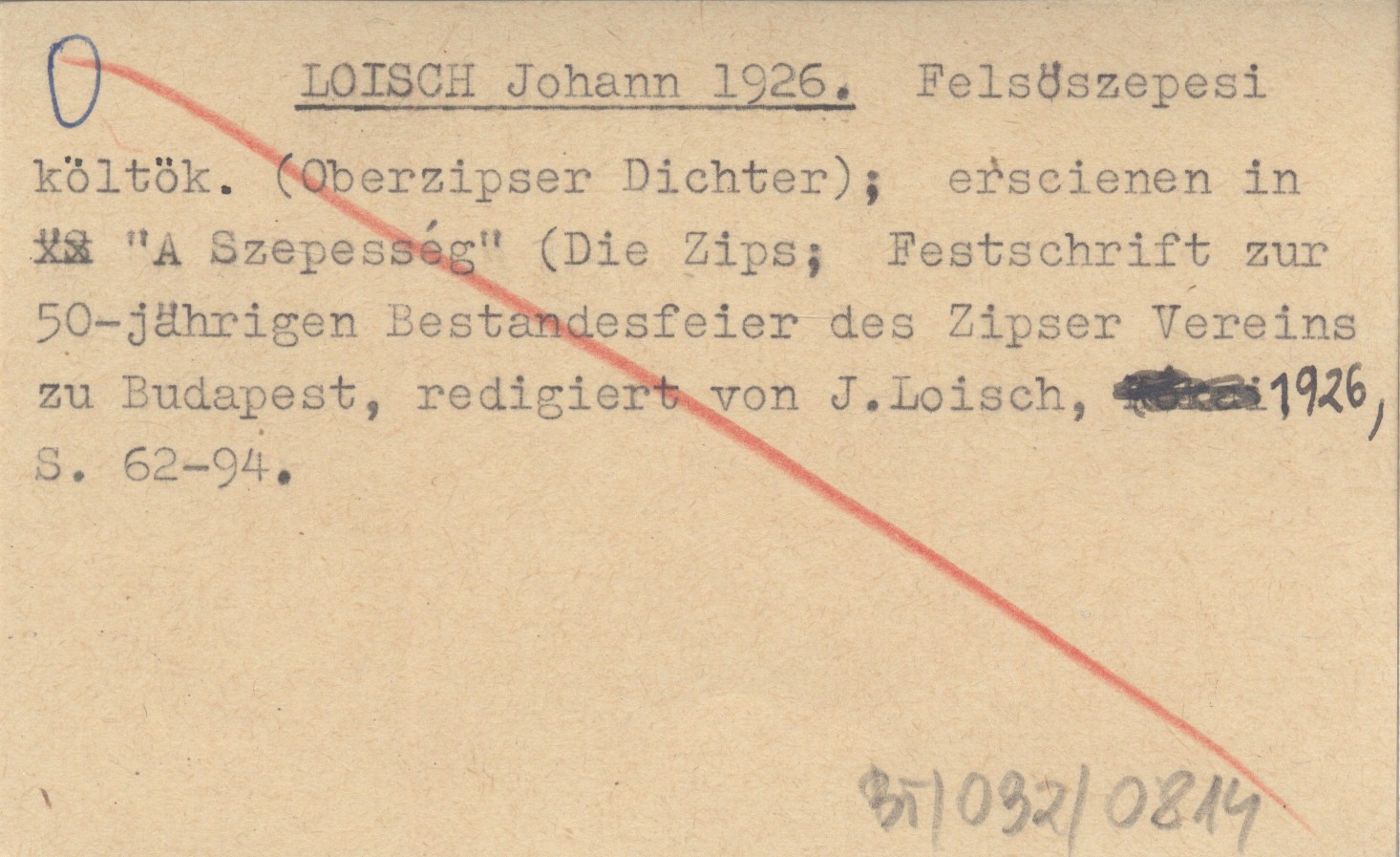 LOISCH Johann 1926 Felsöszepesi költök. (Oberzipser Dichter); erscienen in "A Szepesség".