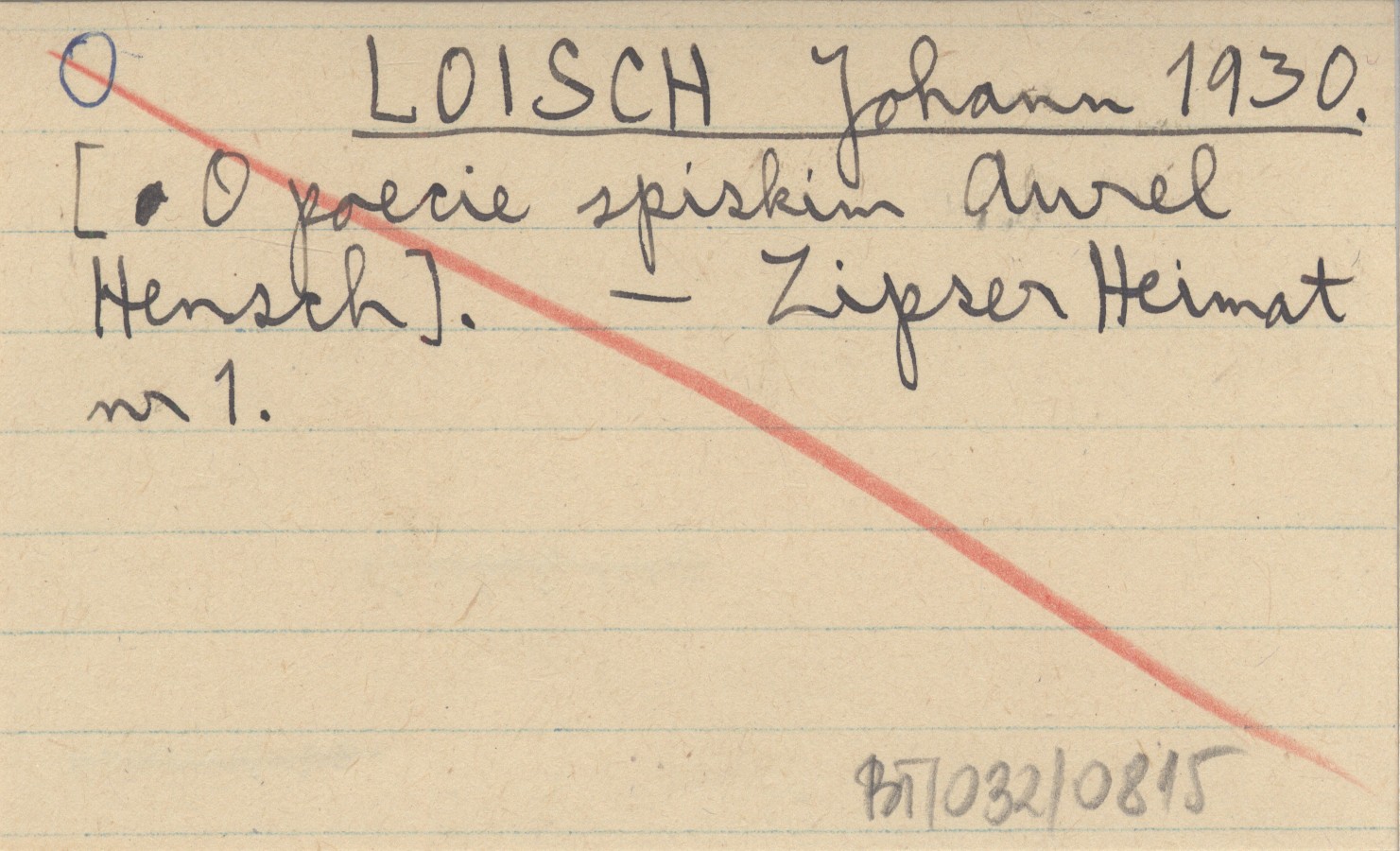 LOISCH Johann 1930 [O poecie spiskim Aurel Hensch].