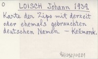 LOISCH Johann 1939 Karte der Zips mit derzeit oder ehemals gebrauchten deutschen Namen.