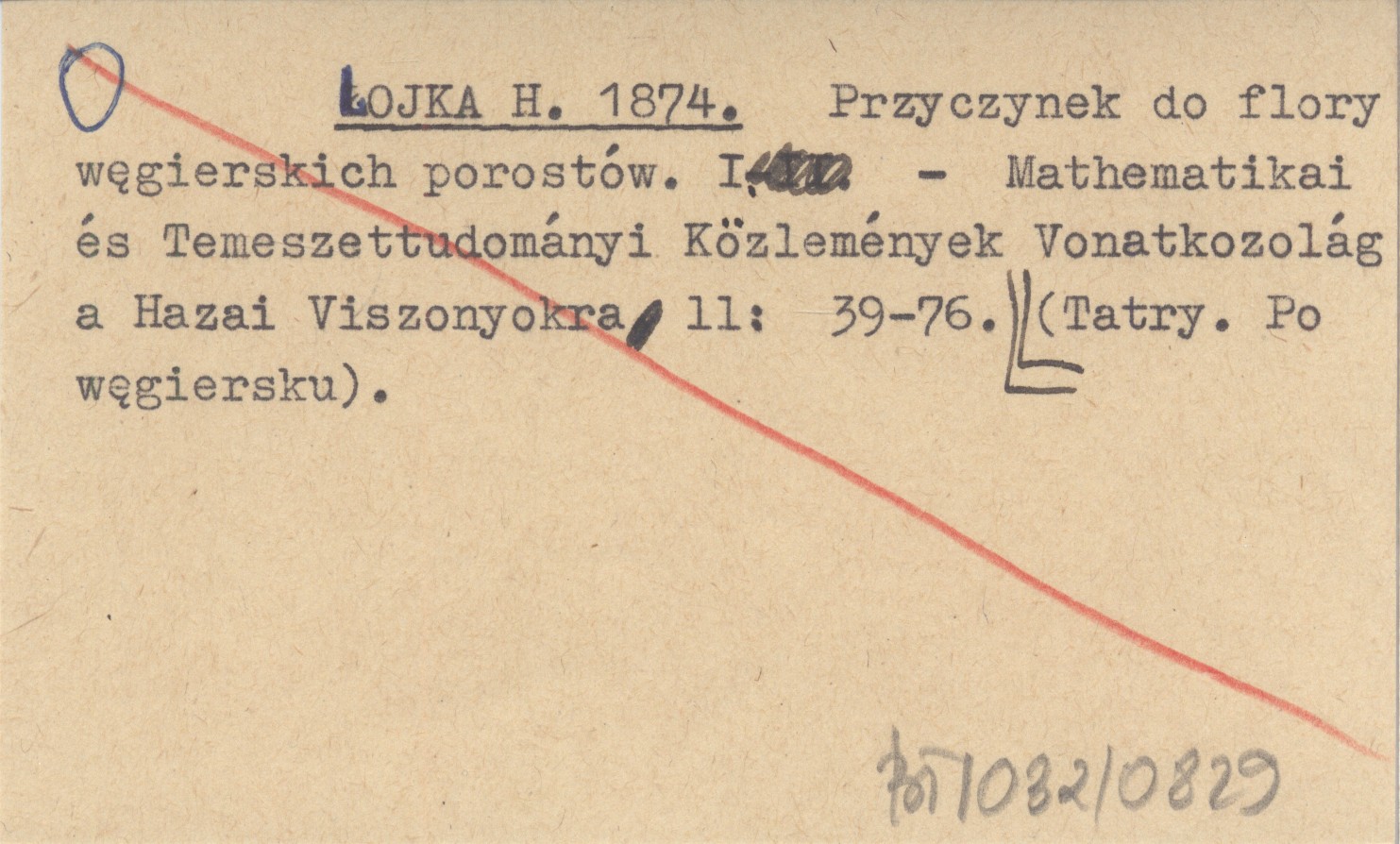 LOJKA H. 1874 Przyczynek do flory węgierskich porostów. I.