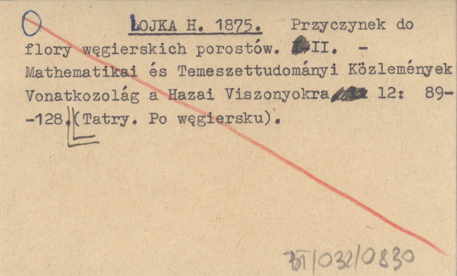 LOJKA H. 1875 Przyczynek do fory węgierskich porostów. II.