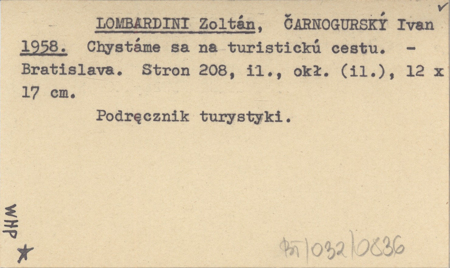LOMBARDINI Zoltán ČARNOGURSKÝ, Ivan. ; 1958 Chystáme sa na turistickú cestu.