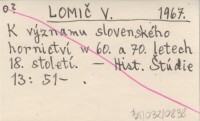 LOMIČ V. 1967 K významu slovenského hornictví w 60. a 70. letech 18. století.
