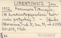 LORENTOWICZ Jan 1912 Kazimierz Tetmajer. (W dwudziestopięciolecie twórczości poetyckiej).