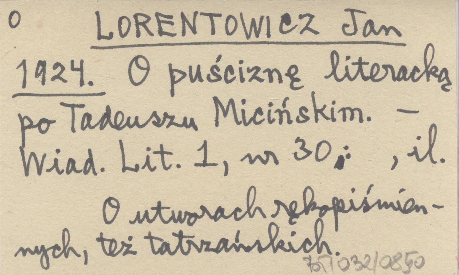 LORENTOWICZ Jan 1924 O puściznę literacką po Tadeuszu Micińskim.