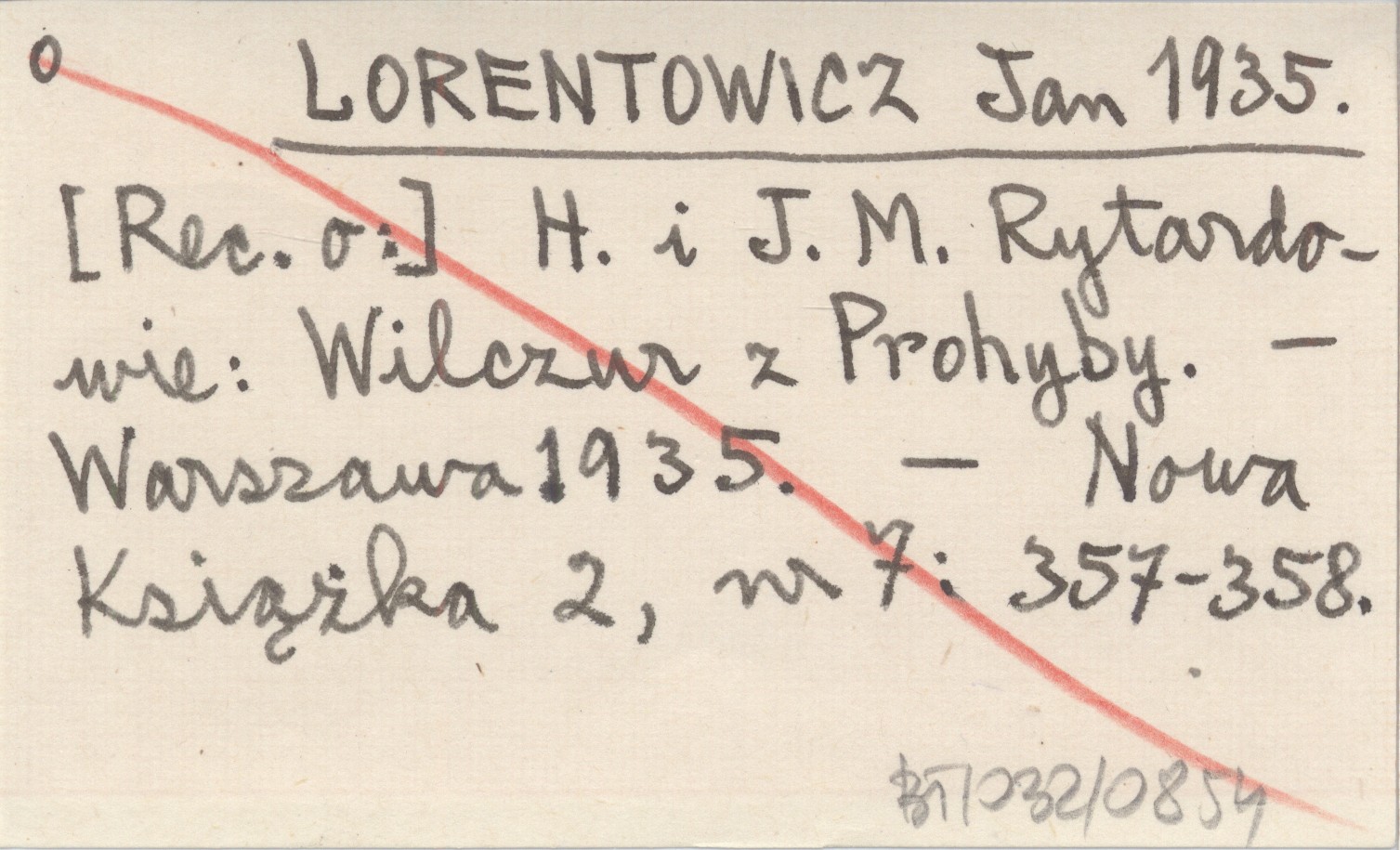 LORENTOWICZ Jan 1935 H. i J. M. Rytardowie: Wilczur z Prohyby. Warszawa 1935.