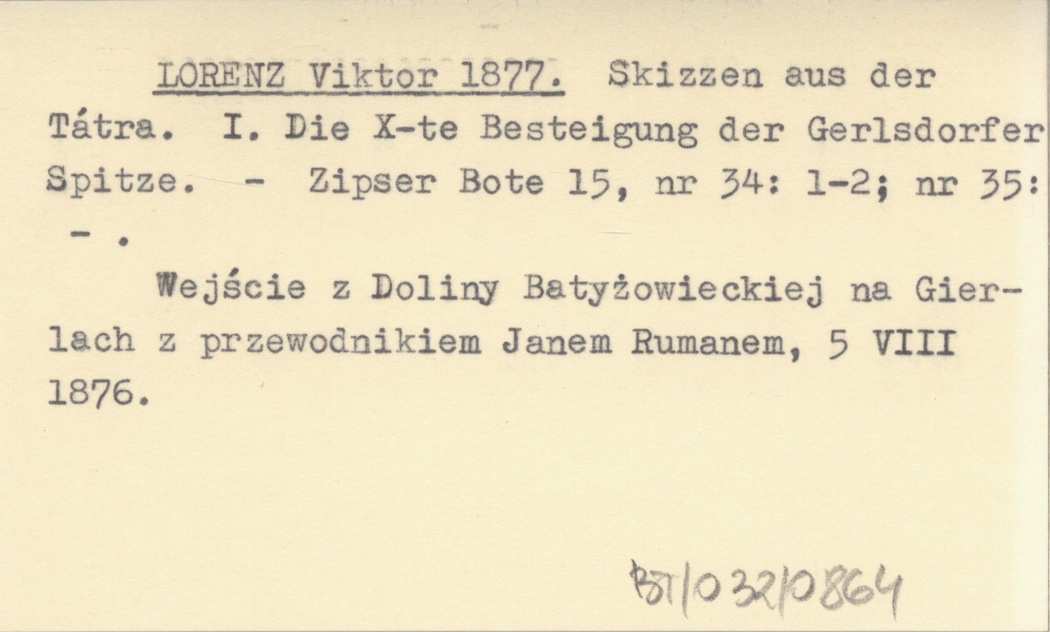 Zipser Bote, 15, nr 34: 1-2 ; nr 35. Wejście z Doliny Batyżowieckiej na Gierlach z przewodnikiem Janem Rumanem, 5 VIII 1876.