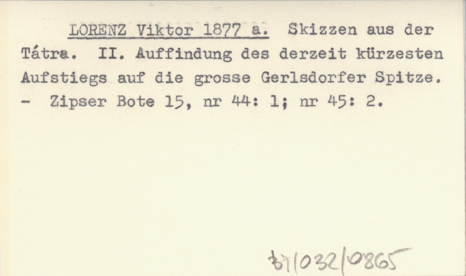 LORENZ Viktor 1877 a Skizzen aus der Tátra. II. Auffindung des derzeit kürzesten Aufstiegs auf die grosse Gerlsdorfer Spitze.