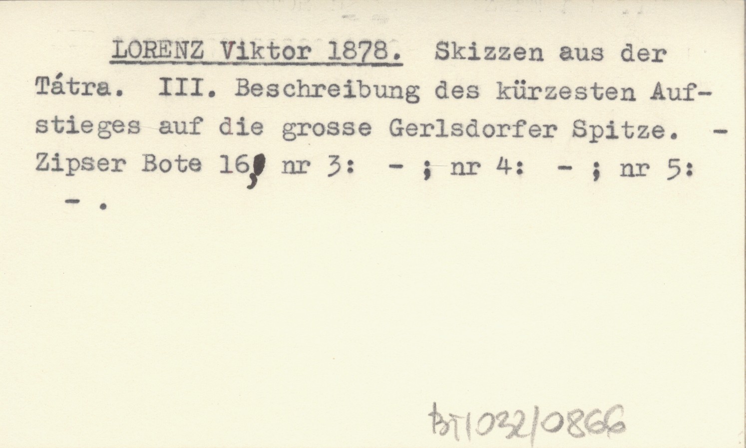 LORENZ Viktor 1878 Skizzen aus der Tátra. III. Beschreibung des kürzesten Aufstieges auf die grosse Gerlsdorfer Spitze.