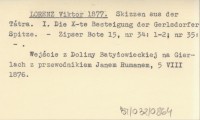 LORENZ Viktor 1877 a Skizzen aus der Tátra. II. Auffindung des derzeit kürzesten Aufstiegs auf die grosse Gerlsdorfer Spitze.