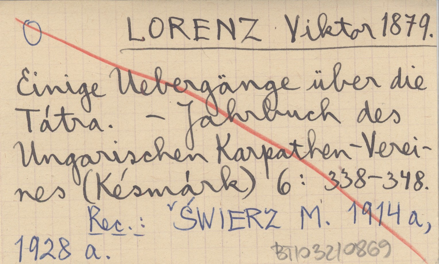 LORENZ Viktor 1879 Einige Uebergänge über die Tátra.