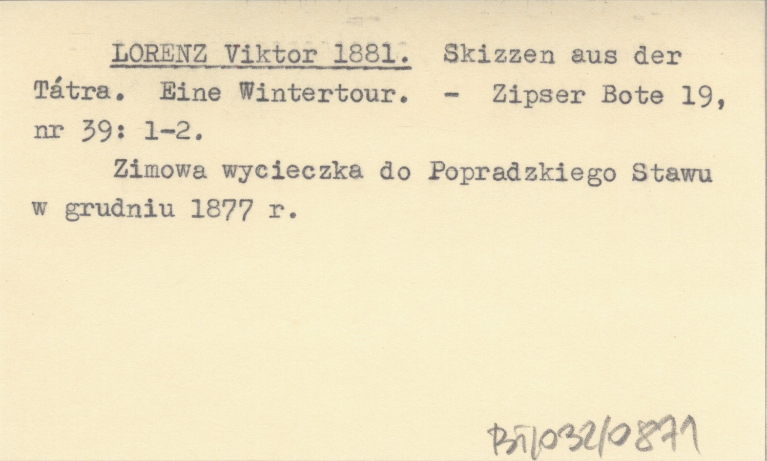 LORENZ Viktor 1881 Skizzen aus der Tátra. Eine Wintertour.