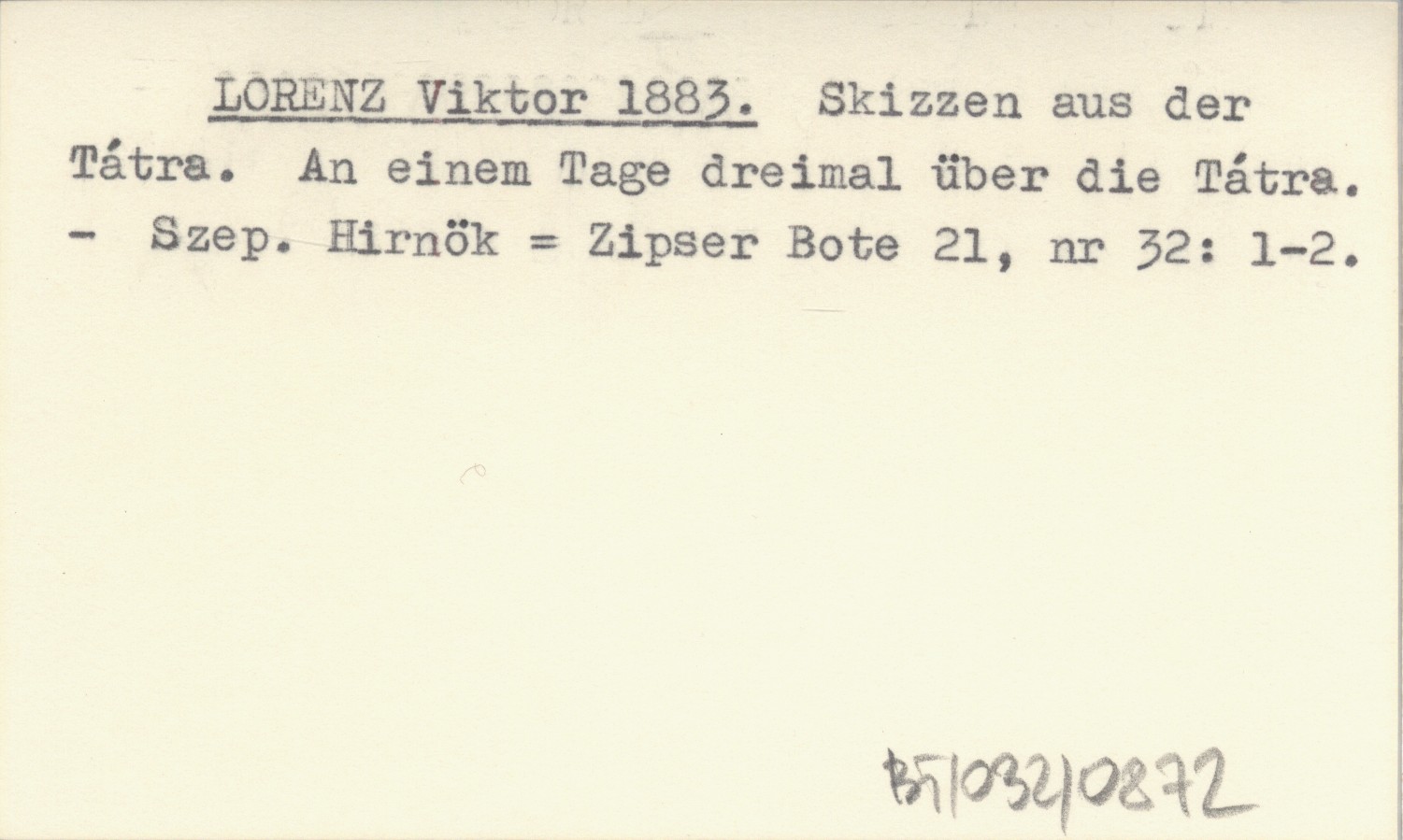 LORENZ Viktor 1883 Skizzen aus der Tátra. An einem Tage dreimal über die Tátra.