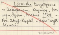 Lotniska turystyczne w Zakopanem, Krynicy, Nowym Sączu, Krośnie. 1929