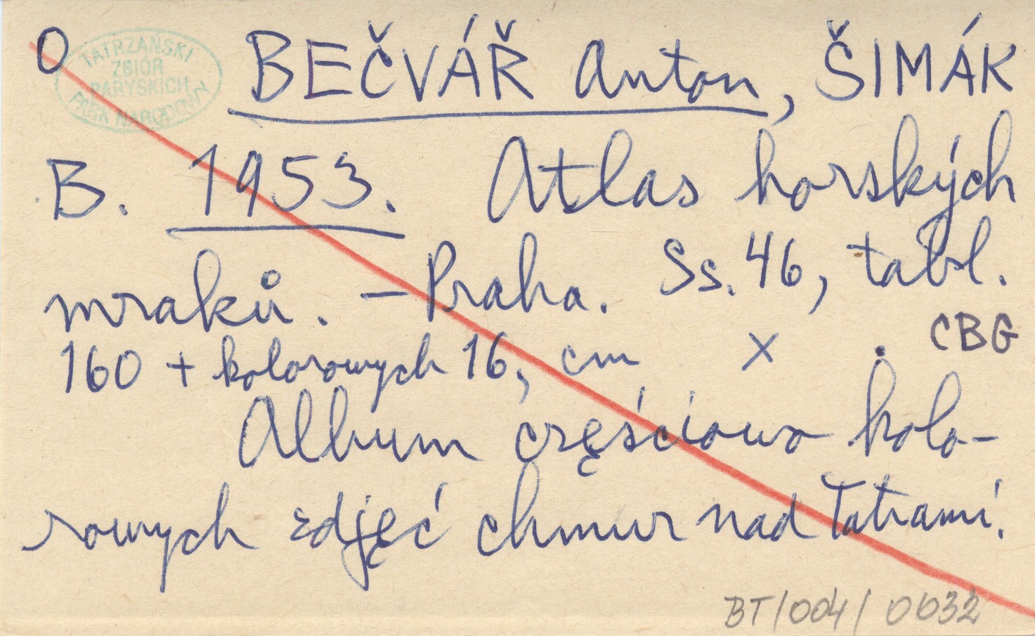 BEČVÁŘ Anton ŠIMÁK, B. ; 1953 Atlas horských mraků.