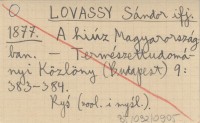 LOVASSY Sándor ifj. 1877 A hiúz Magyarországban.
