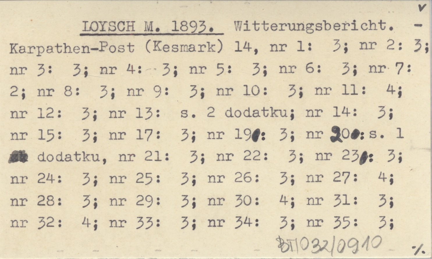 Karpathen-Post (Kesmark) , 14, nr 1: 3 ; nr 2: 3 ; nr 3: 3 ; nr 4: 3 ; nr 5: 3 ; nr 6: 3 ; nr 7: 2 ; nr 8: 3 ; nr 9: 3 ; nr 10: 3 ; nr 11: 4 ; nr 12: 3 ; nr 13: 2 (dod.) ; nr 14: 3 ; nr 15: 3 ; nr 17: 3 ; nr 19: 3 ; nr 20: 1 (dod.) ; nr 21: 3 ; nr 22: 3 ; nr 23: 3 ; nr 24: 3 ; nr 25: 3 ; nr 26: 3 ; nr 27: 4 ; nr 28: 3 ; nr 29: 3 ; nr 30: 4 ; nr 31: 3 ; nr 32: 4 ; nr 33: 3 ; nr 34: 3 ; nr 35: 3 ; nr 36: 3 ; nr 37: 3 ; nr 38: 3 ; nr 39: 3 ; nr 40: 4 ; nr 41: 3 ; nr 42: 3 ; nr 43: 3 ; nr 44: 3 ; nr 45: 3 ; nr 46: 2 (dod.) ; nr 47: 3 ; nr 48: 1 (dod.) ; nr 49: 1 (dod.) ; nr 50: 1 (dod.) ; nr 51: 1 (dod.) ; nr 52: 2 (dod.).