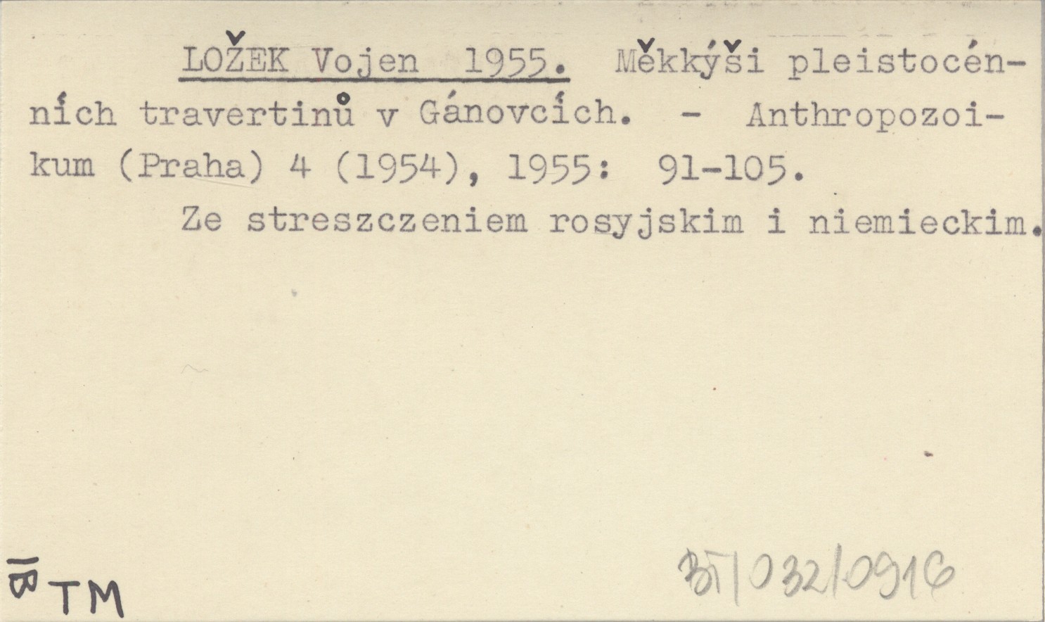 LOŽEK Vojen 1955 Měkkýši pleistocénních travertinů v Gánovcích.