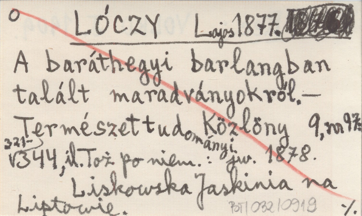 LÓCZY Lajos 1877 A baráthegyi barlangban talált maradványokról.