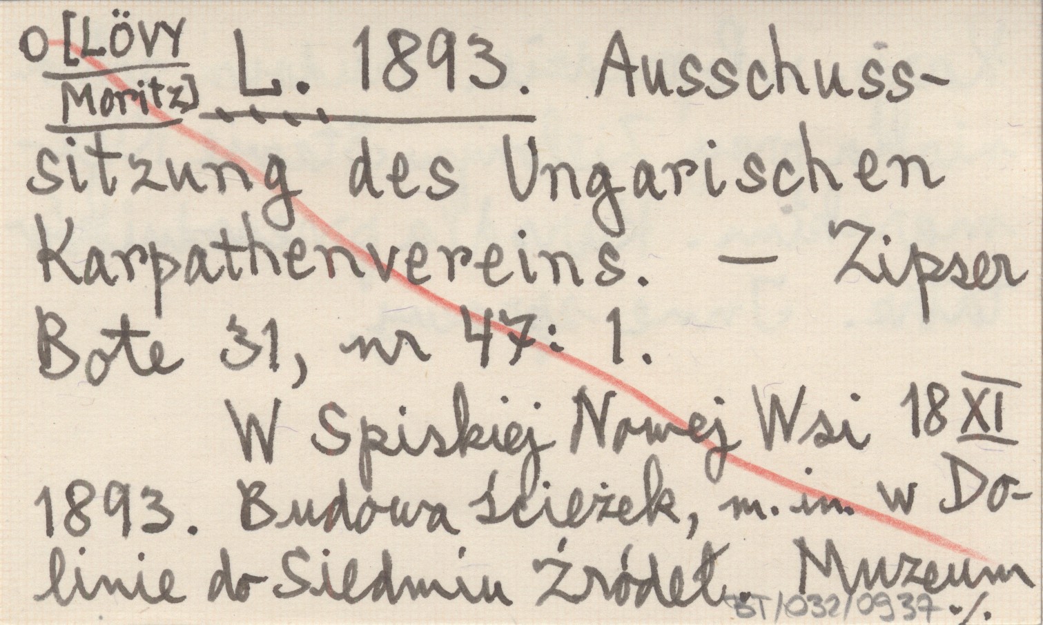 L. [LÖVY Moritz] 1893 Ausschusssitzung des Ungarischen Karpathenvereins.