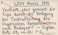 LÖVY Moritz 1891 Verliert oder gewinnt die Zips durch die Verlegung der Centralleitung des Ungarischen Karpathenvereins nach Budapest?