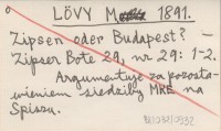 LÖVY M. 1891 Soll's die Zips oder Budapest sein?