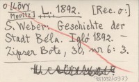 L. [LÖVY Moritz] 1892 S. Weber: Geschichte der Stadt Béla. Igló 1892.