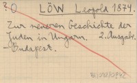 LÖW Leopold 1874 Zur neueren Geschichte der Juden in Ungarn.
