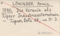 LÖWINGER Armin 1890 Die Keramik als Zipser Industrieunternehmen.