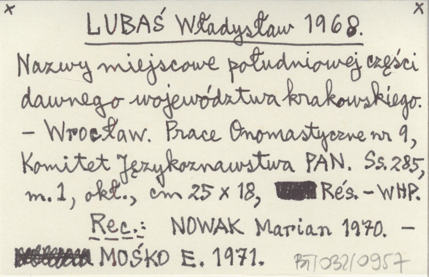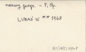 (Prace Onomastyczne, nr 9) Komitet Językoznawstwa PAN (Wrocław) , 285 s., 1 m., okł., Rés., 25x18 cm. REC: NOWAK Marian 1970 ; MOŚKO E. 1971 ;