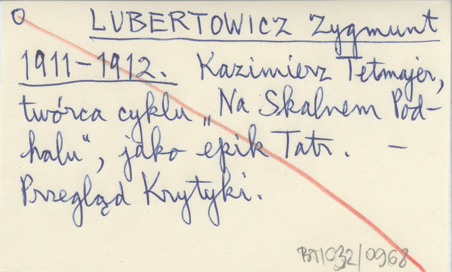 LUBERTOWICZ Zygmunt 1911-1912 Kazimierz Tetmajer, twórca cyklu "Na Skalnem Podhalu", jako epik Tatr.