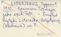 LUBERTOWICZ Zygmunt 1911-1912 Kazimierz Tetmajer, twórca cyklu "Na Skalnem Podhalu", jako epik Tatr.