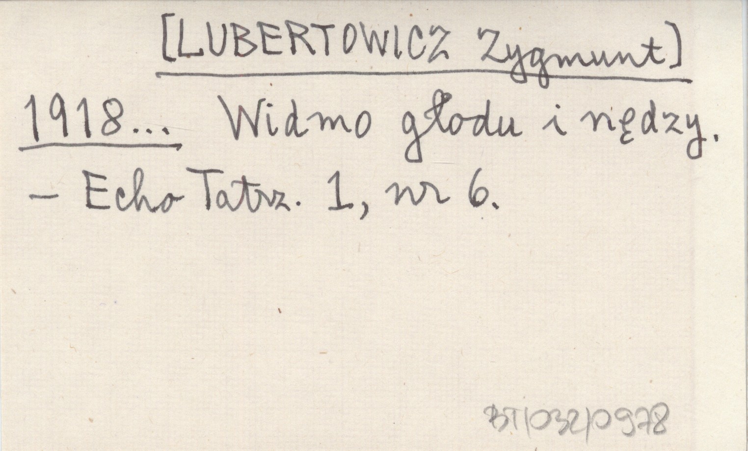 [LUBERTOWICZ Zygmunt] 1918... Widmo głodu i nędzy.