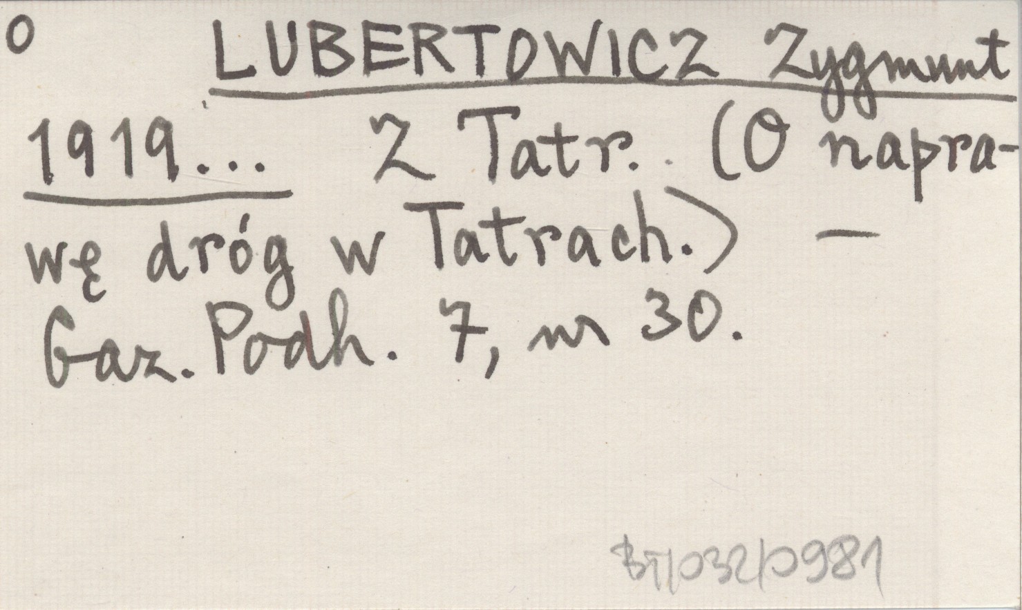 LUBERTOWICZ Zygmunt 1919... Z Tatr. (O naprawę dróg w Tatrach.).