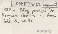 [LUBERTOWICZ Zygmunt] 1920... Błog. pamięci Dr. Herman Schein.