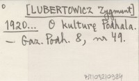 [LUBERTOWICZ Zygmunt] 1920... O kulturę Podhala.