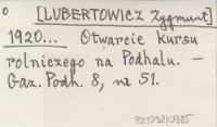 [LUBERTOWICZ Zygmunt] 1920... Otwarcie kursu rolniczego na Podhalu.