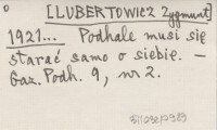 [LUBERTOWICZ Zygmunt] 1921... Podhale musi się starać samo o siebie.
