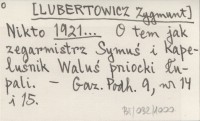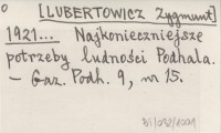[LUBERTOWICZ Zygmunt] 1921... Twardy przednowek.