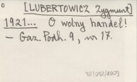 [LUBERTOWICZ Zygmunt] 1921... O wolny handel!
