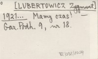 [LUBERTOWICZ Zygmunt] 1921... Mamy czas!